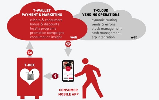 Automatenbetreiber benutzen die Webanwendung, um Zahlungen, Feedback und Aktivitäten von Kunden in Echtzeit zu verfolgen und Treue- und Bonusprogramme zu erstellen. Betreiber können das Erscheinungsbild der mobilen App konfigurieren und so ihren eigenen Zahlungsdienst für Automaten erstellen.